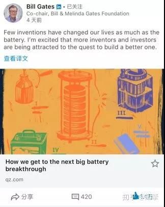 最近刷领英看到比尔·盖茨分享的一篇文章。他说很少有发明像电池一样给生活带来这么大的改变。同时,越来越多的发明家河投资家投身到这个领域,致力于制造出更好的电池。他转发的这篇文章叫做《How we get to the next big battery breakthrough 》,发表于2019年4月8日,其中包含一些最新的信息。我把原文翻译成了中文,供参考!希望看原文的可以点击文章末尾的原文链接。