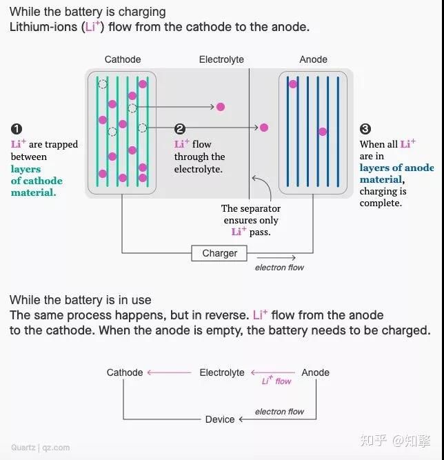 AG尊时凯龙目前最前沿的电池化学是锂离子。大多数专家都同意,在至少十年或更长的时间里,没有其他化学物质会破坏锂离子。锂离子电池有两个电极(阴极和阳极),中间有一个分离器(一种可以传导离子而不是电子的材料,旨在防止短路),还有一个电解质(通常是液体),使锂离子在电极之间来回流动。当电池充电时,离子从阴极移动到阳极;当电池供电时,离子向相反的方向移动。