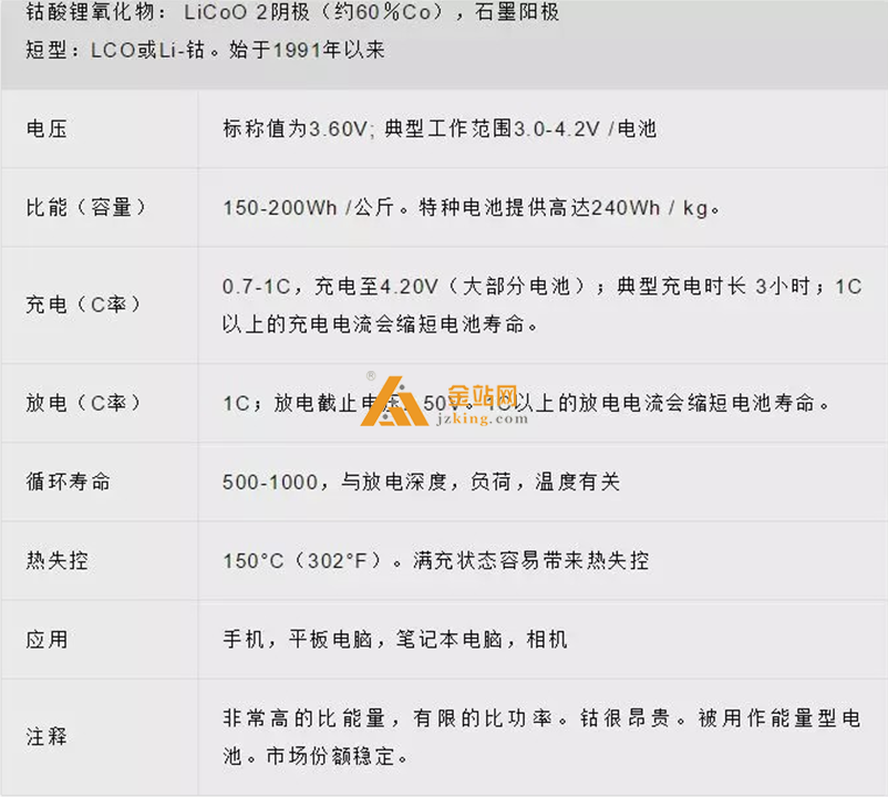 AG尊时凯龙常常会说到三元锂电池或者铁锂电池,这些都是按照正极活性材料来给锂电池命名 的。本文汇总六种常见锂电池类型以及它们的主要性能参数。大家都知道,相同技术路线 的电芯,其具体参数并不完全相同,本文所显示的是当前参数的一般水平。六种锂电池具 体 包 括 : 钴 酸 锂 ( LiCoO2 ) , 锰 酸 锂 ( LiMn2O4 ) , 镍 钴 锰 酸 锂 ( LiNiMnCoO2 或 NMC ) , 镍 钴 铝 酸 锂 ( LiNiCoAlO2 或 称 NCA ) , 磷 酸 铁 锂 ( LiFePO4 ) , 钛 酸 锂