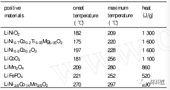 常见的正极材料在温度低于650℃时是稳定的,在充电时处于亚稳定状态,温度升高时发生如下反应。
